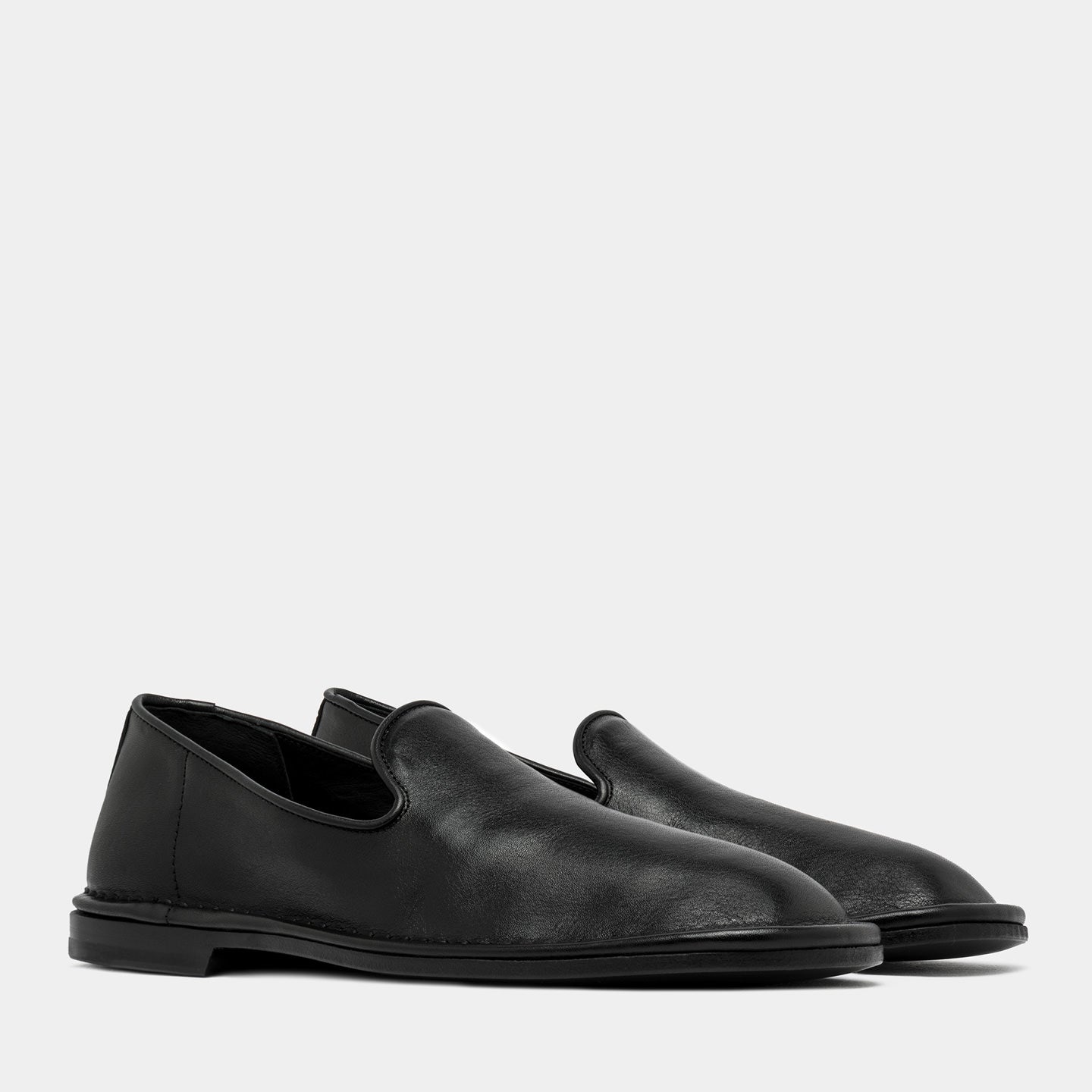 Ercole is a men’s leather slipper, Made in Italy, crafted from soft vegetable-tanned calfskin black.