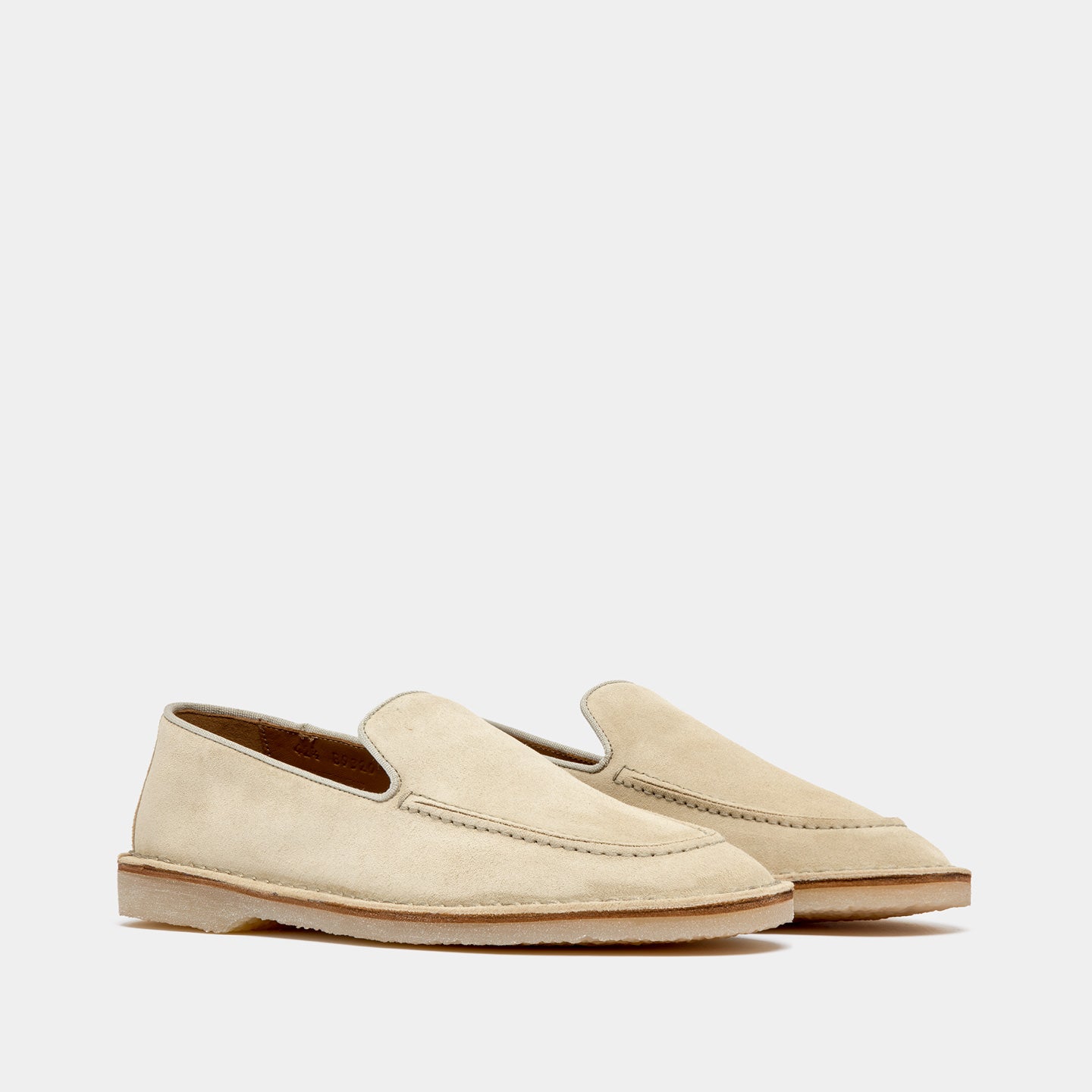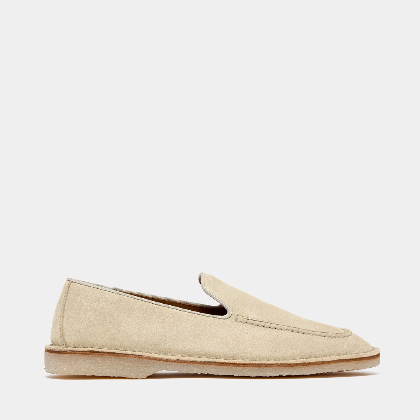 Crafted in suede, it stands out for its soft upper and the hand-stitched detail that enhances its artisanal workmanship. The fabric trims outline the edge of the shoe, adding a technical and lightweight touch.