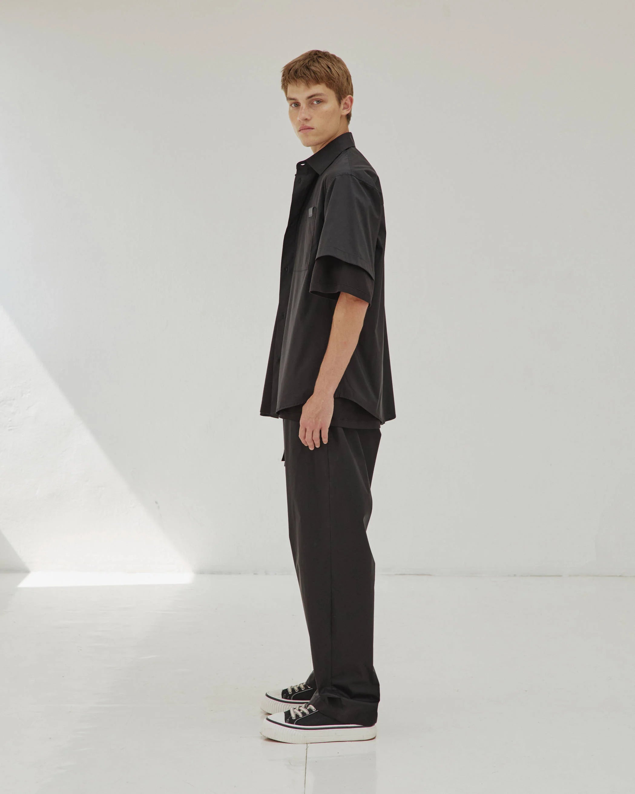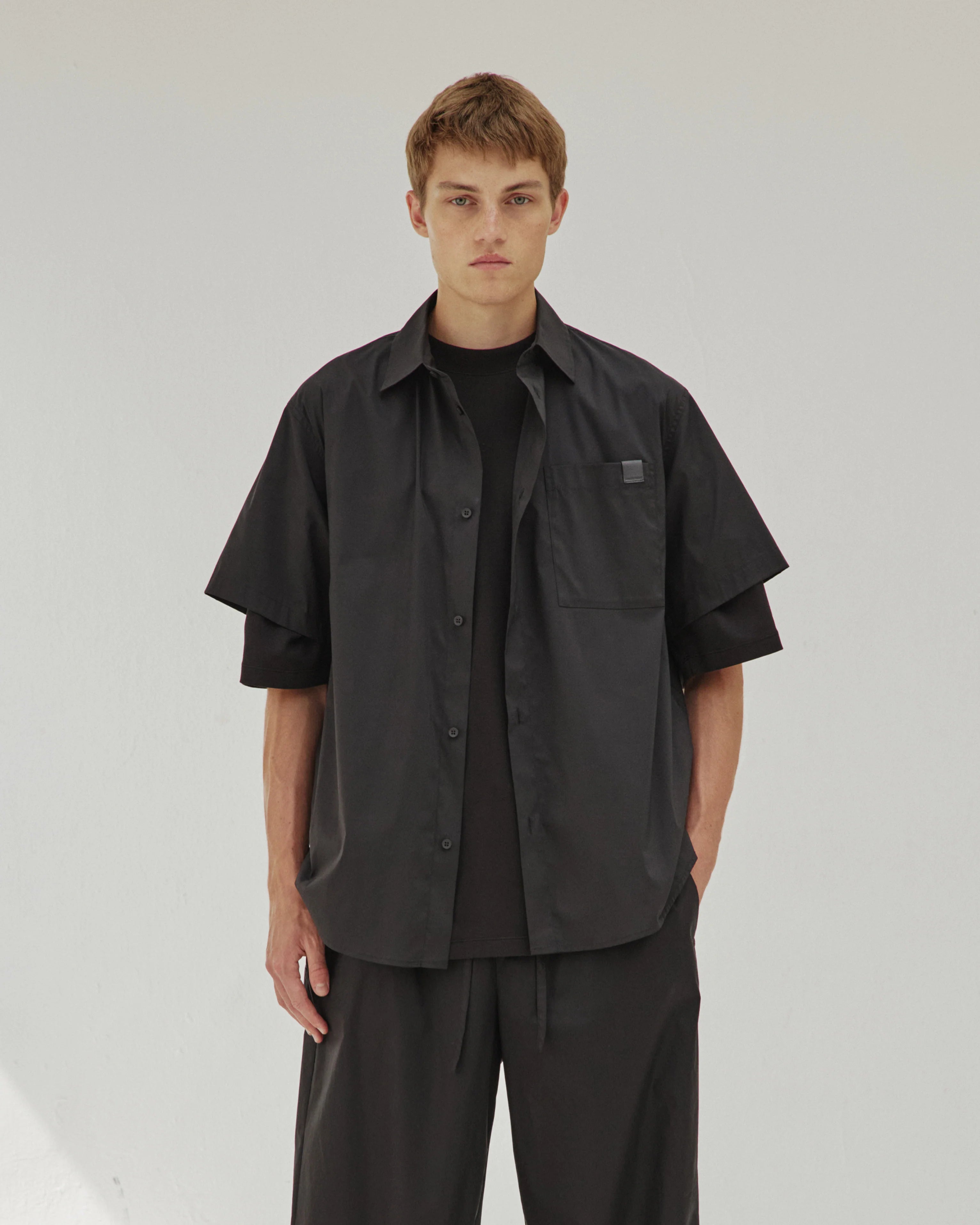 Karl Light Weight Popline Short Sleeved Shirt In Black