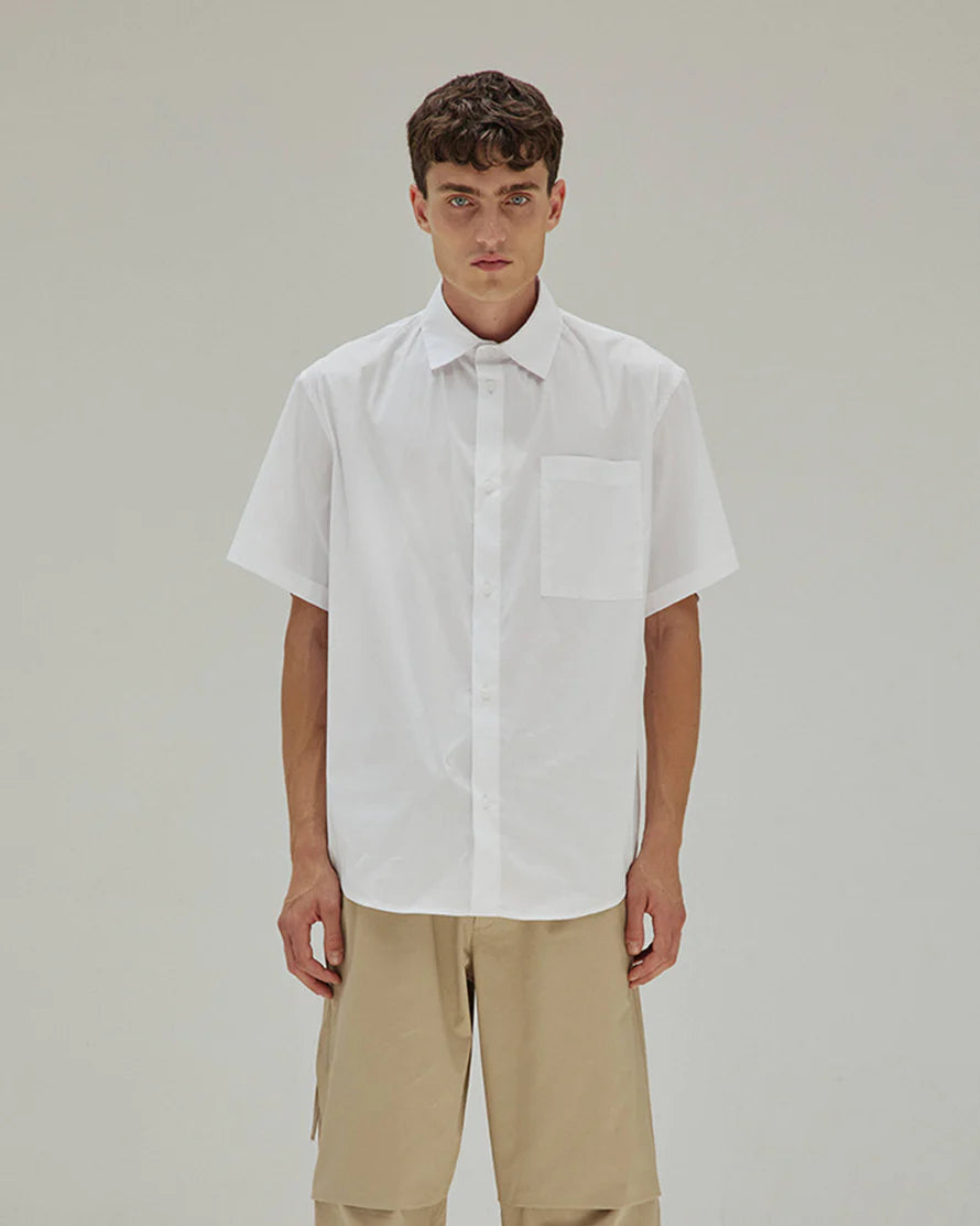 Karl Light Weight Popline Short Sleeved Shirt In White