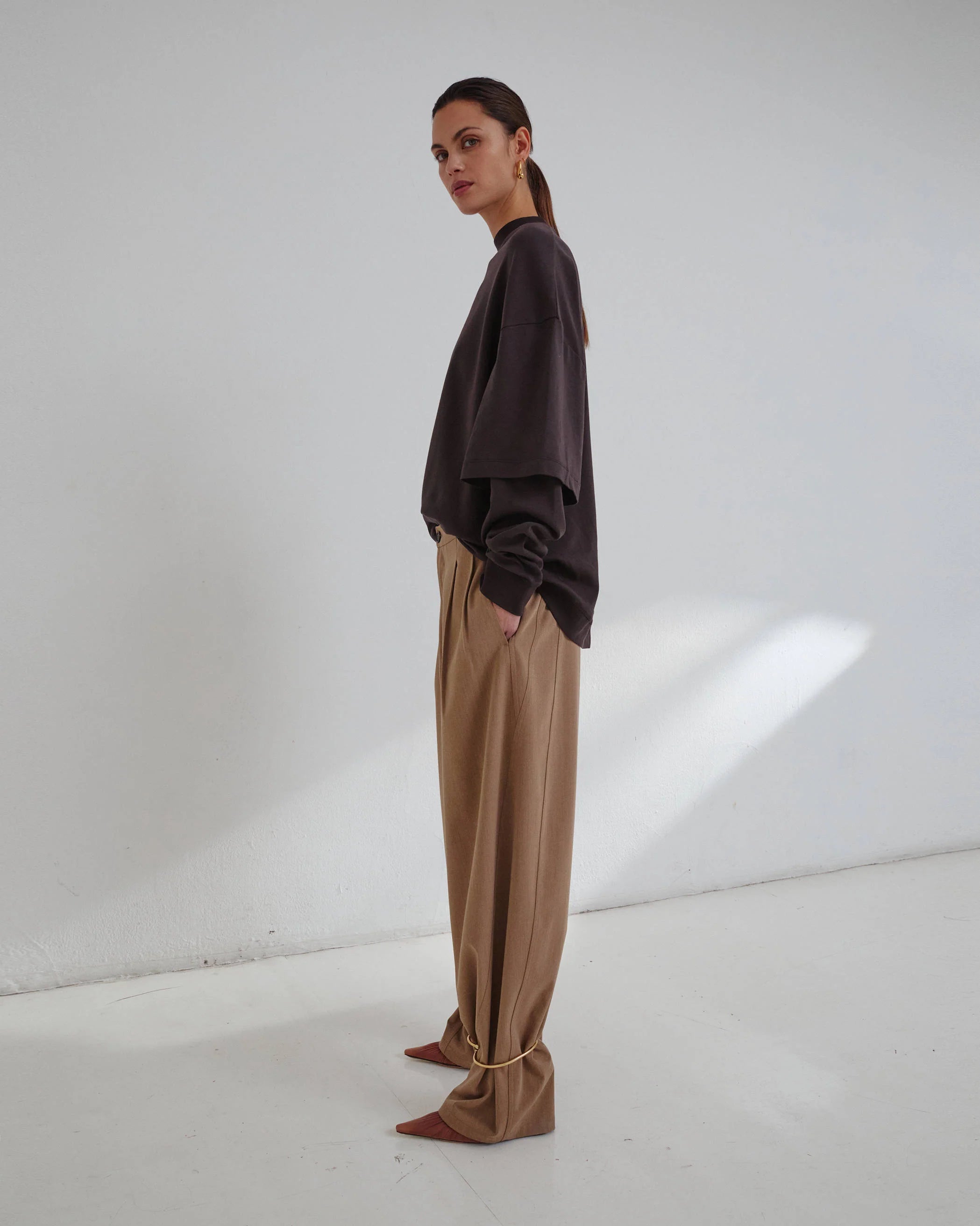Phebe Light Cotton Popline Wide Leg Pant In Beige