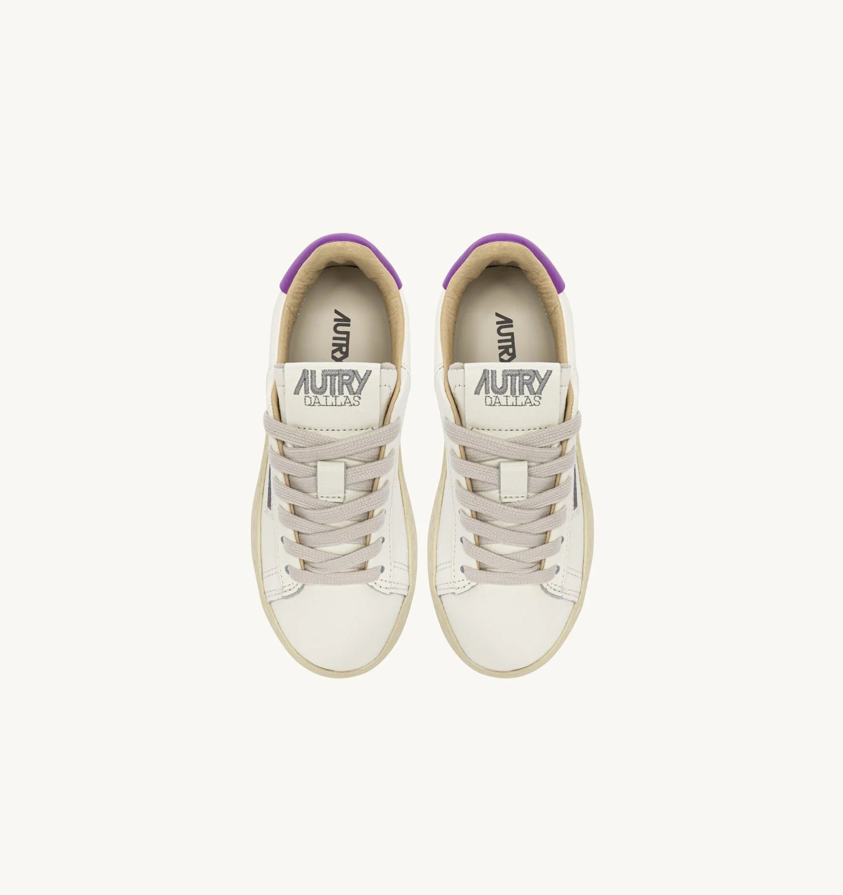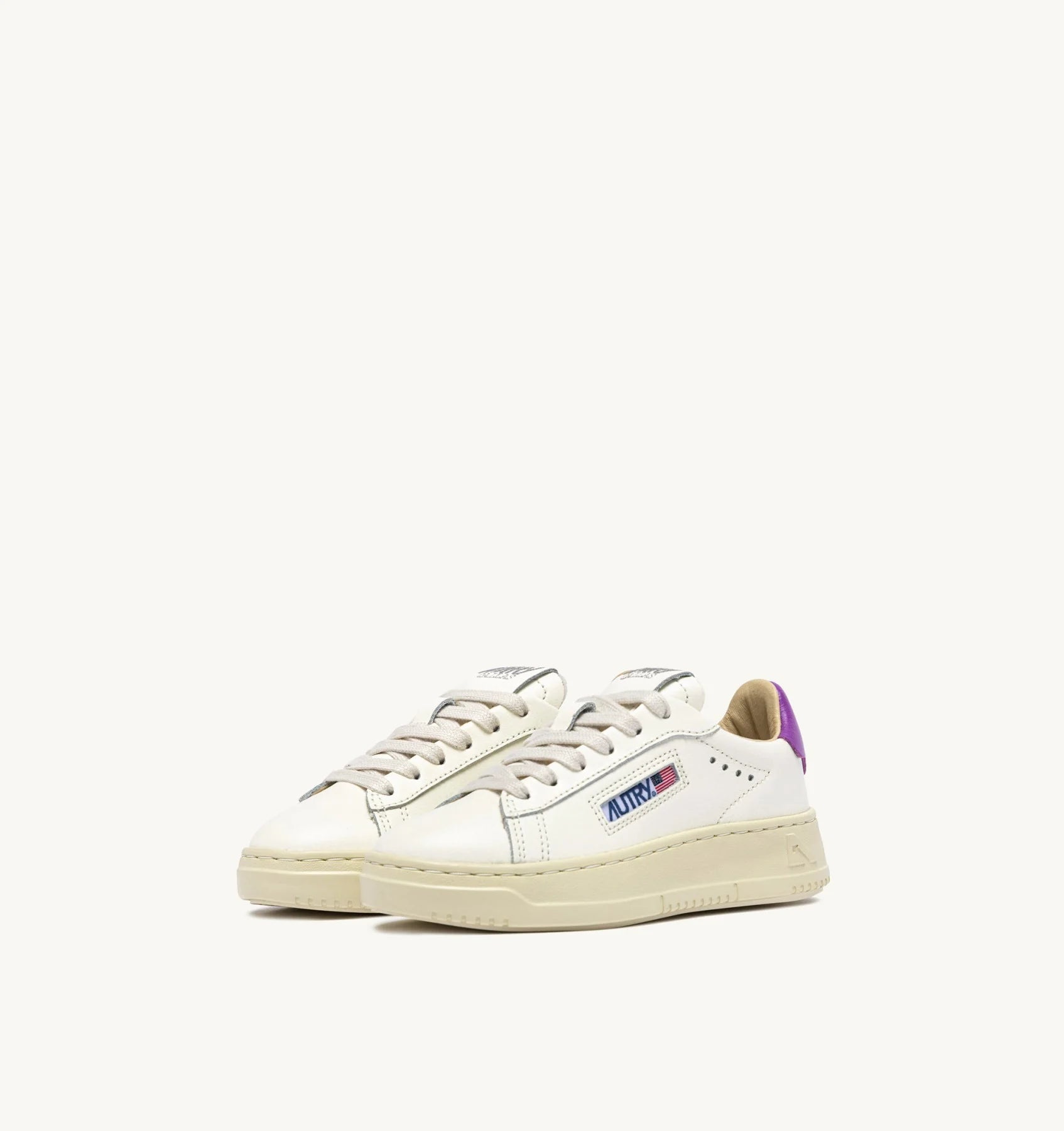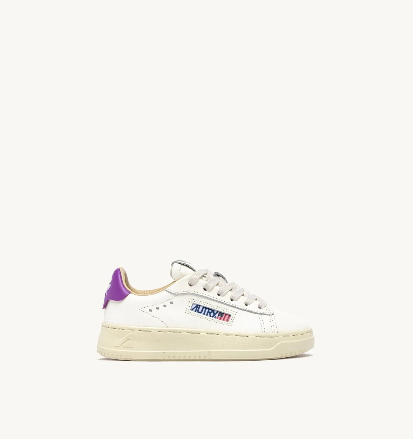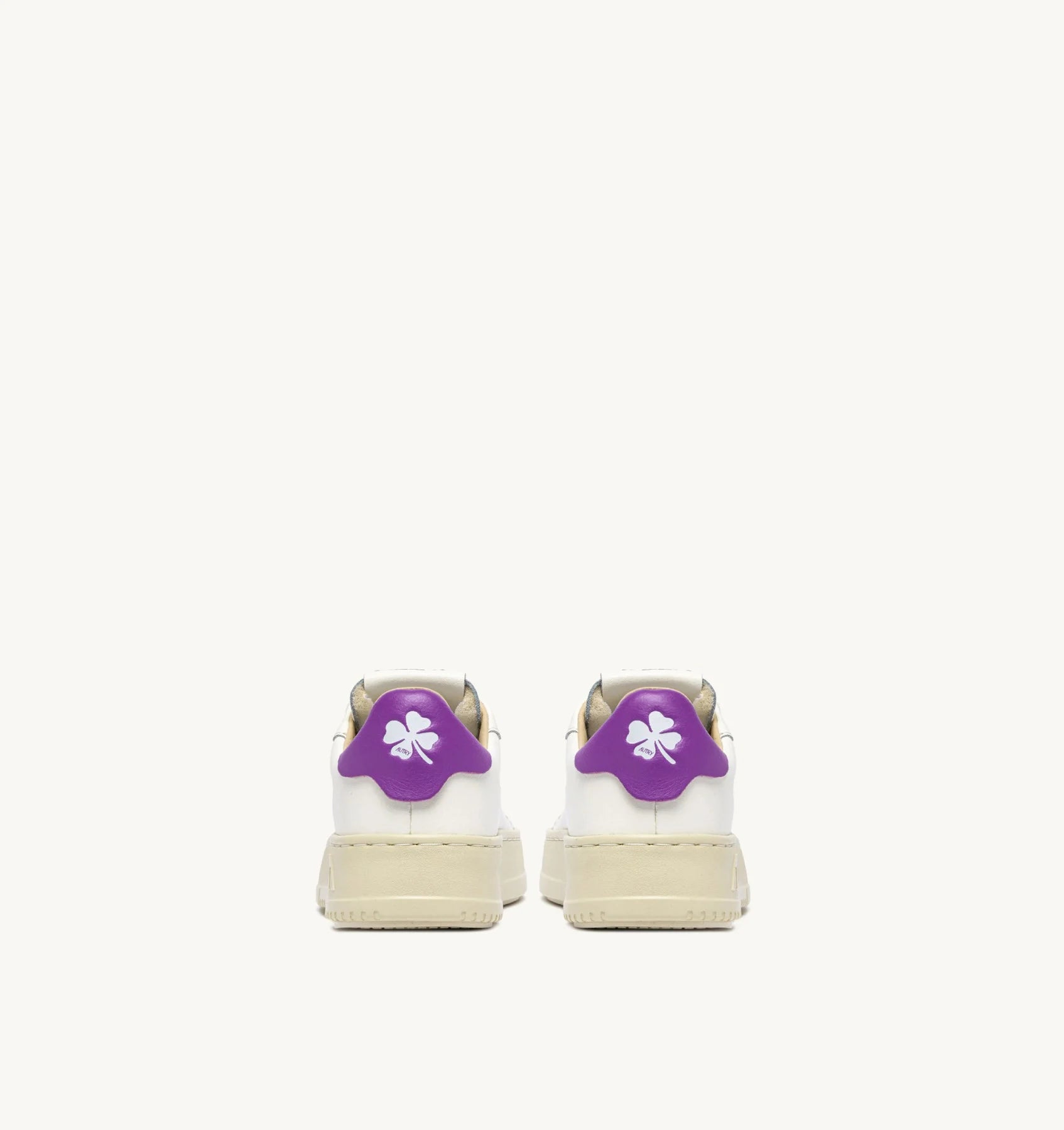 Made in ivory white leather with a purple logo heel tab, they rest on a comfortable rubber sole slightly darker than the upper and stand out for the authentic, logoed details typical of Autry.