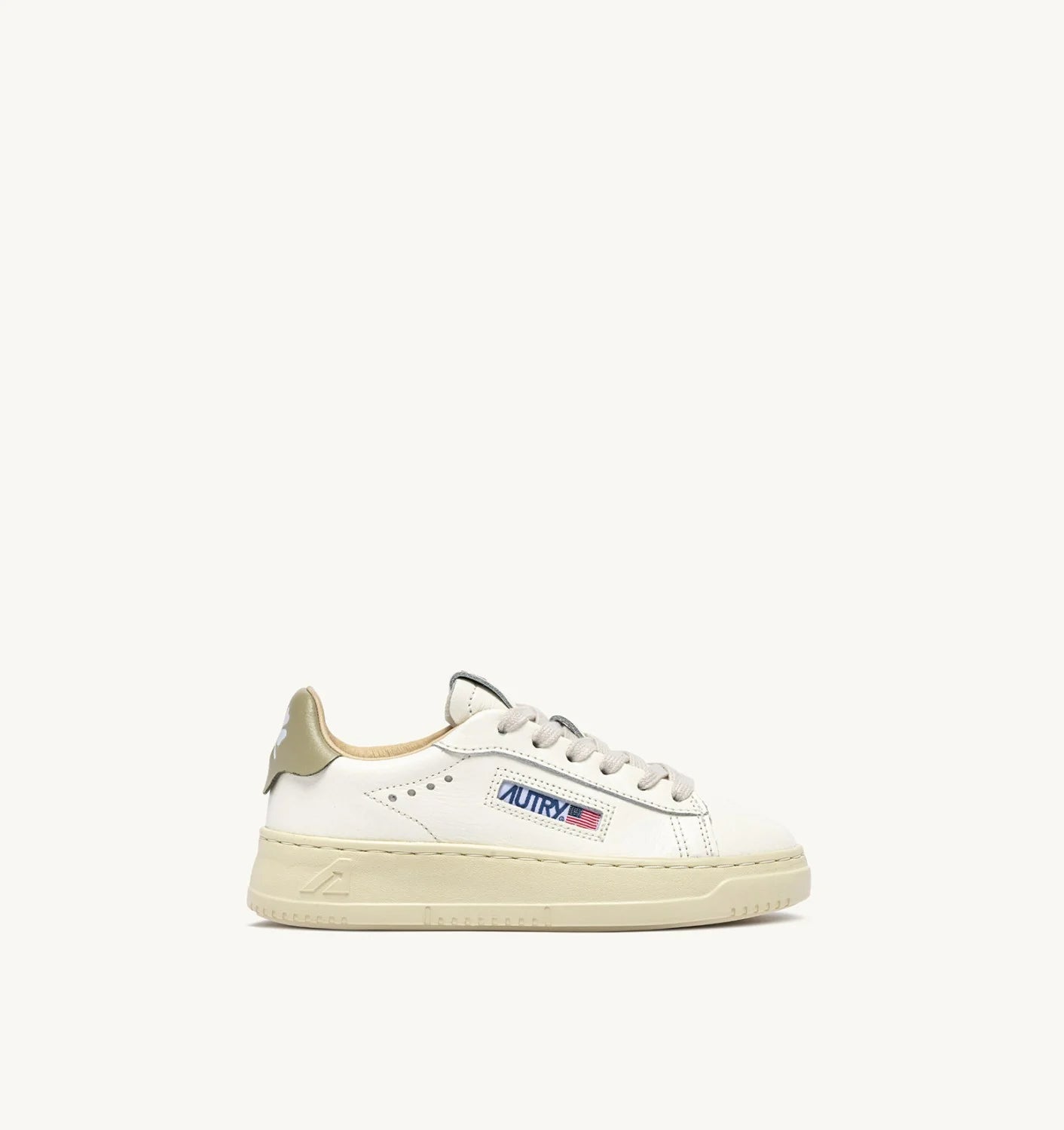 Made in ivory white leather with a green logo heel tab, they rest on a comfortable rubber sole slightly darker than the upper and stand out for the authentic, logoed details typical of Autry.