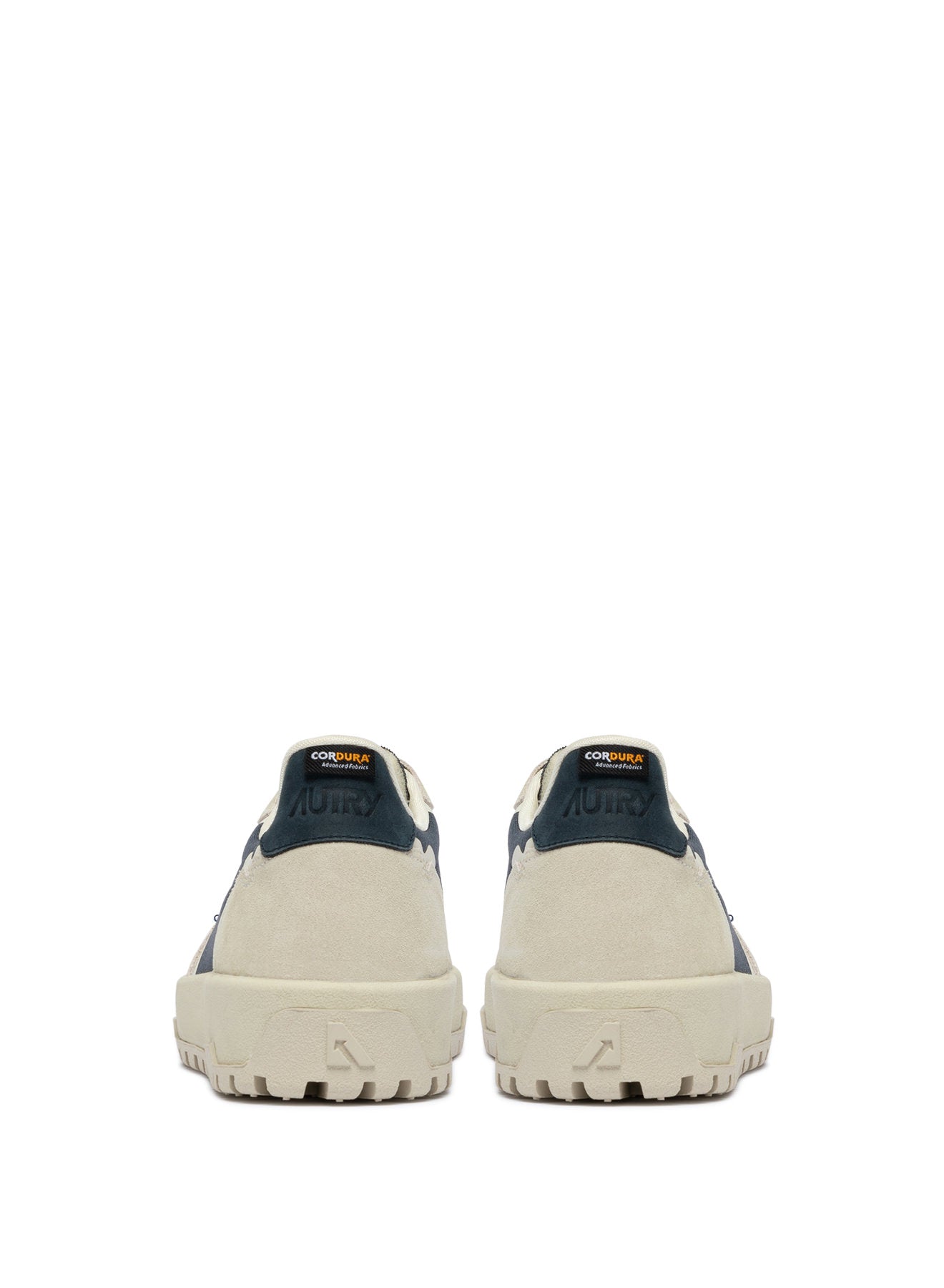 Made of cordura fabric and suede in the shades of white and blue, and enriched with coated TPU details, side detail with Autry logo and a leather back patch with embossed logo.