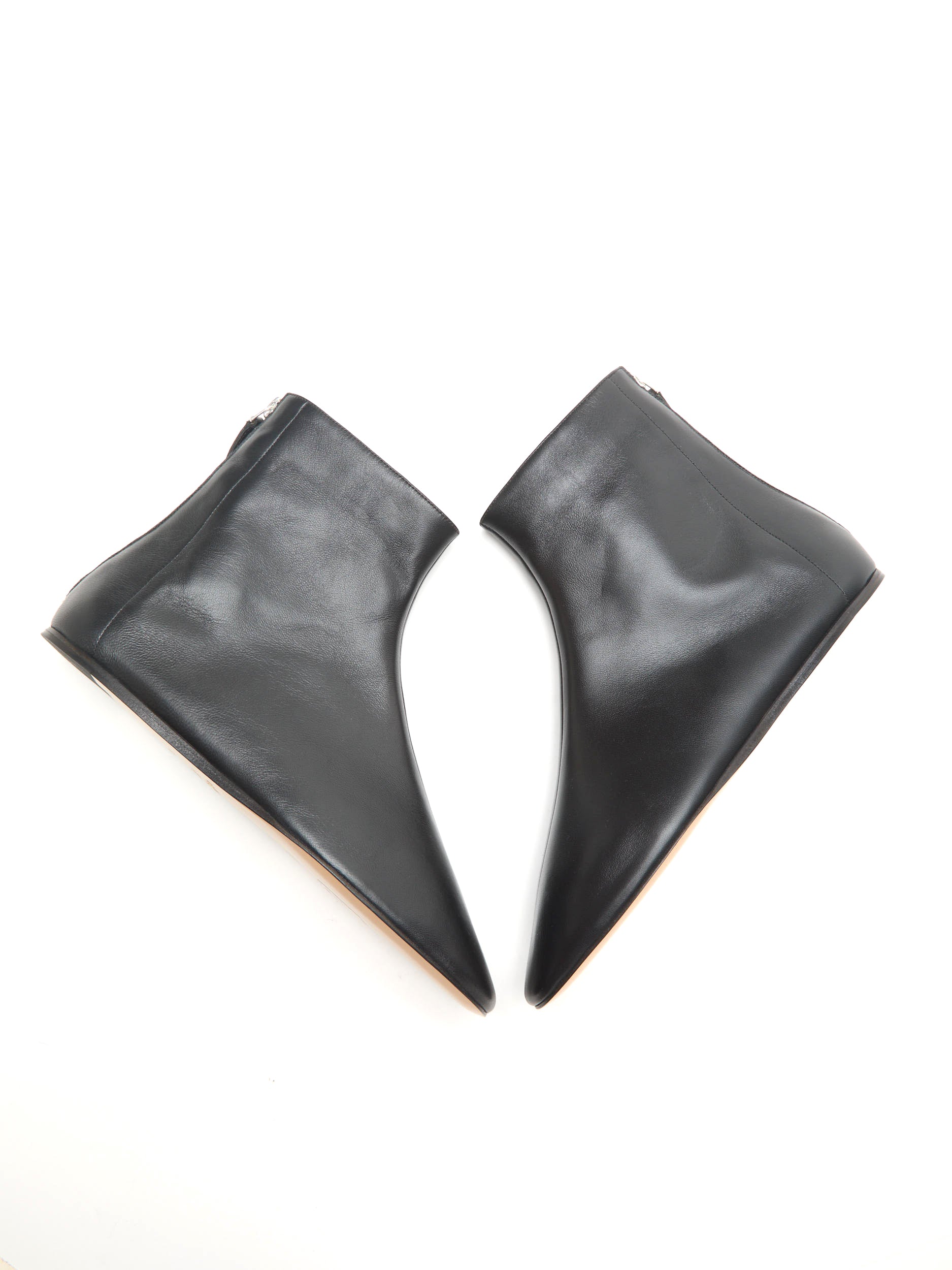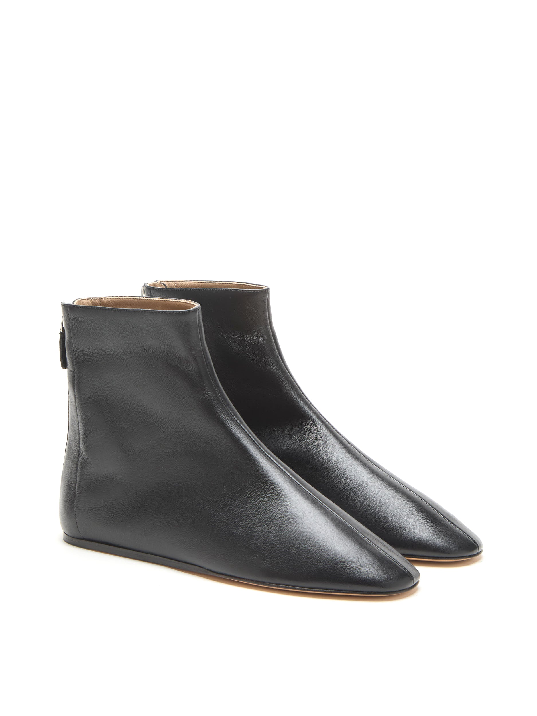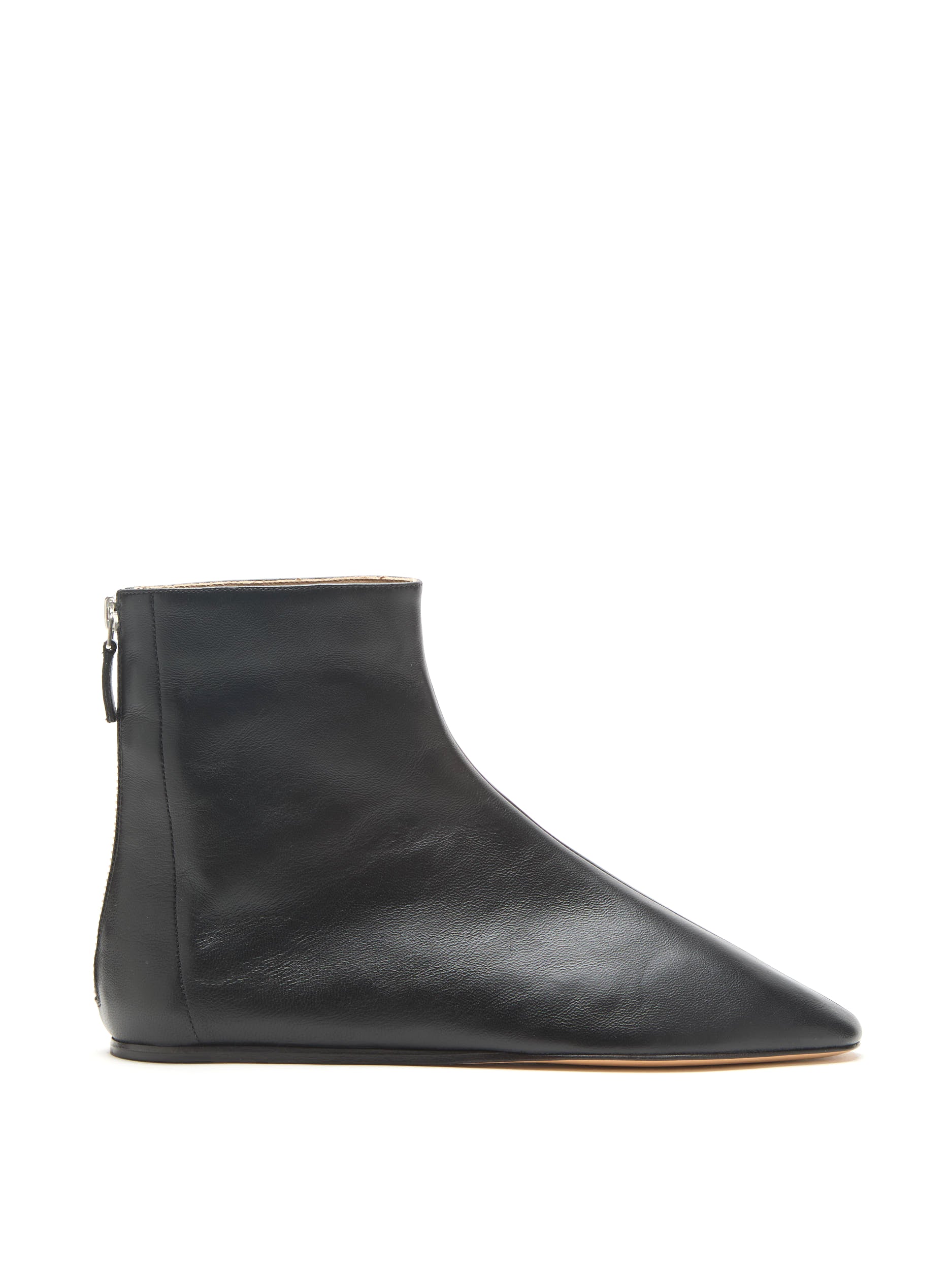 Luna Ankle Boot in black leather, with a cushioned calf leather insole, zip fastening and leather piping. 8mm heel. Made in Italy.