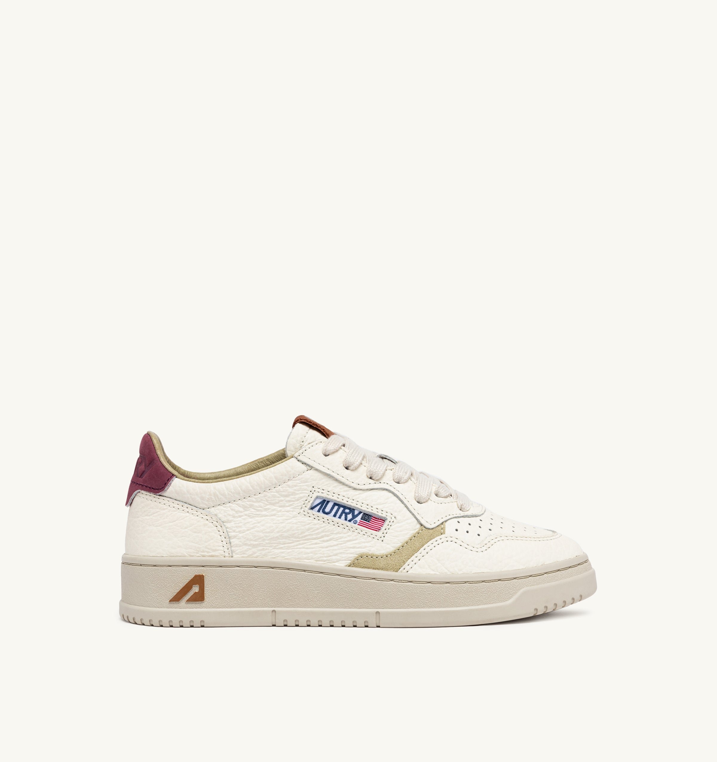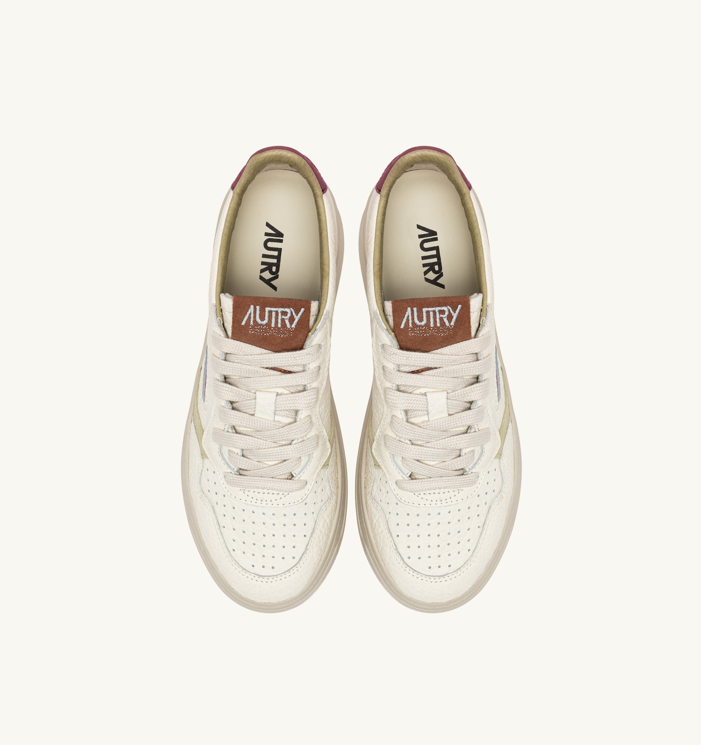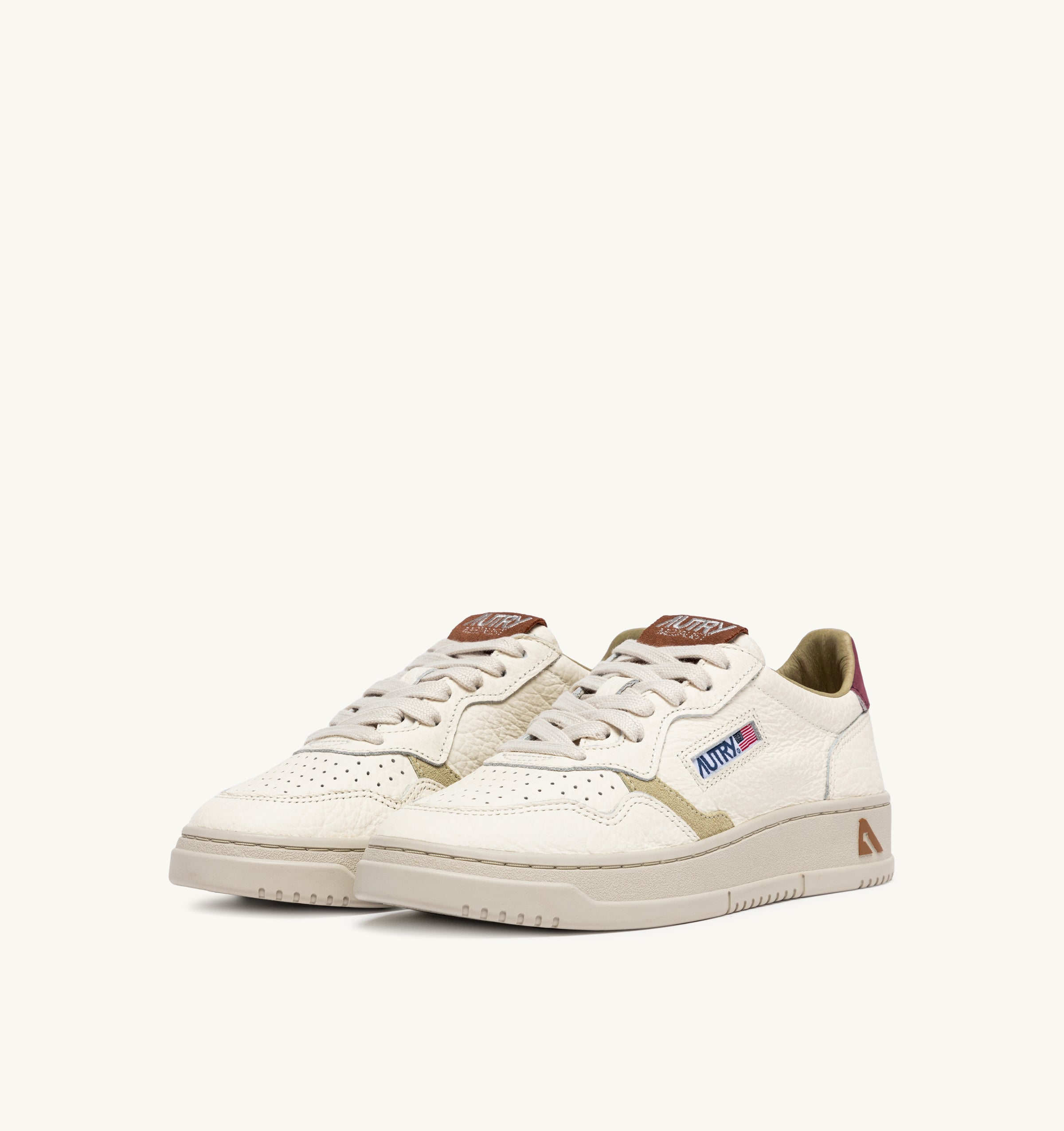 Autry Medalist delivers on your search for unique comfort and style, whether in the city or on the tennis court. This women’s sneakers is crafted from ivory leather with a natural grain, offering a unique appearance and exceptional softness, complemented by beige suede inserts.