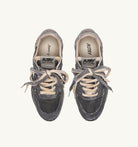 Innovative, light, and extremely flexible, Reelwind draws inspiration from the running world, enhanced by artisanal treatments that give each style a distinct, irregular, and unique used appearance. This model is crafted from a mix of black suede and nylon with side overlays in gray crackle-effect leather.