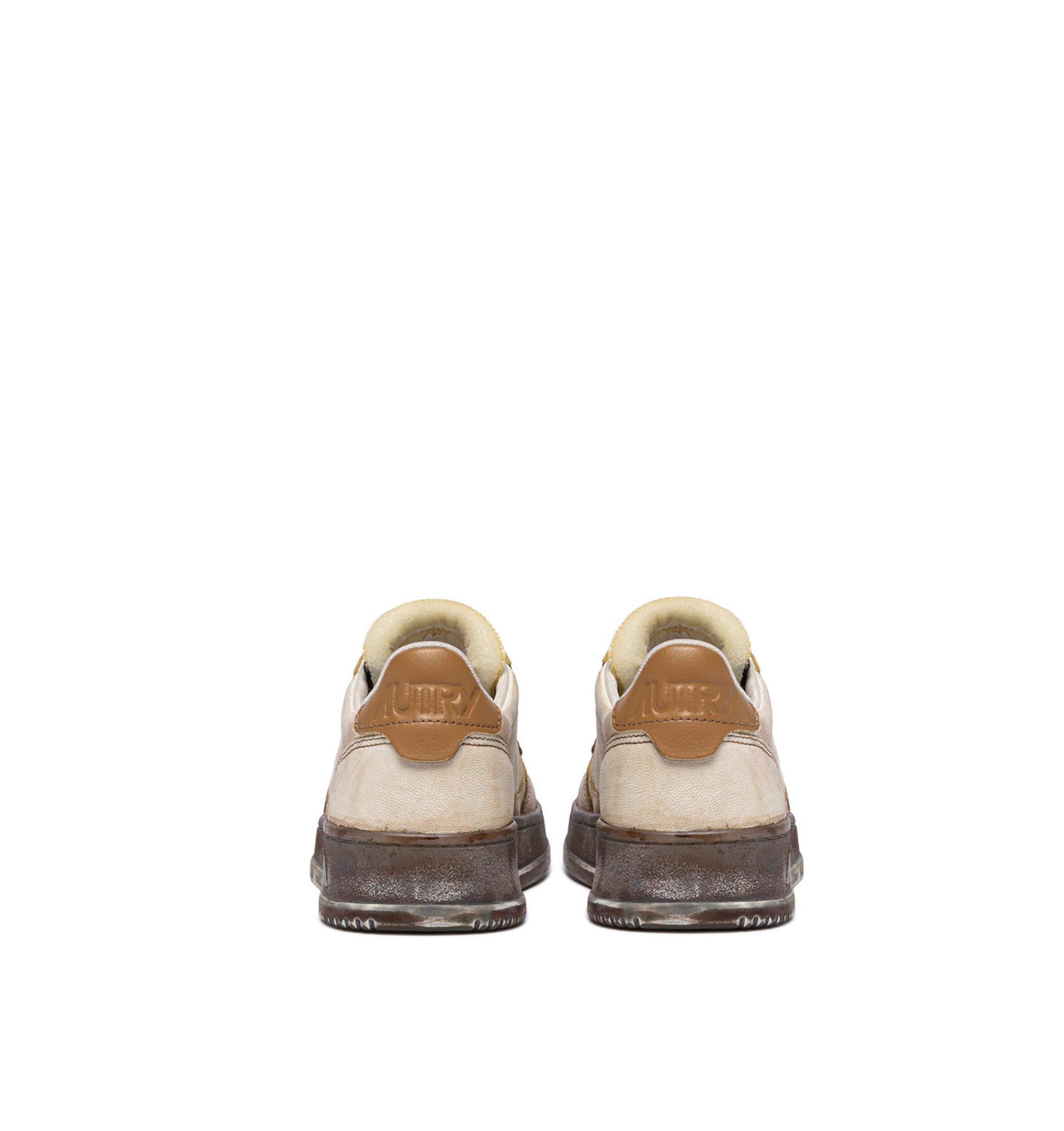 This sneakers is crafted from white smooth leather with lived-in effect brown hues. The side insert draws attention to the jacquard Autry logo.