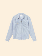 Denim Days. Byron is new this season in a railroad striped denim. Byron is a button-front shirt with pearlized snap buttons, Western-inspired front and back yokes, and button flap chest pockets.